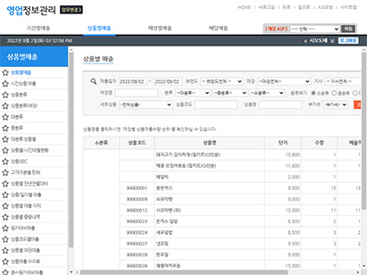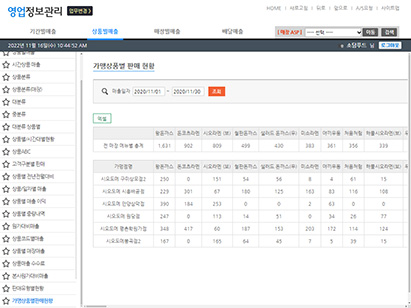 프랜차이즈 ERP 기능중 “영업정보관리”는 프랜차이즈 가맹점의 영업정보를 집계/분석하여