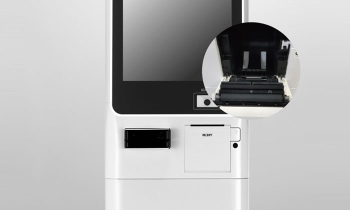 영수증 프린터를 지원합니다. 또한 하부 구조는 필요에 따라 현금 처리 모듈, 여권 또는 ID 카드 리더, 티켓 또는 문서 프린터, UPS 등 다양하게 상황에 따른 적용이 가능합니다.