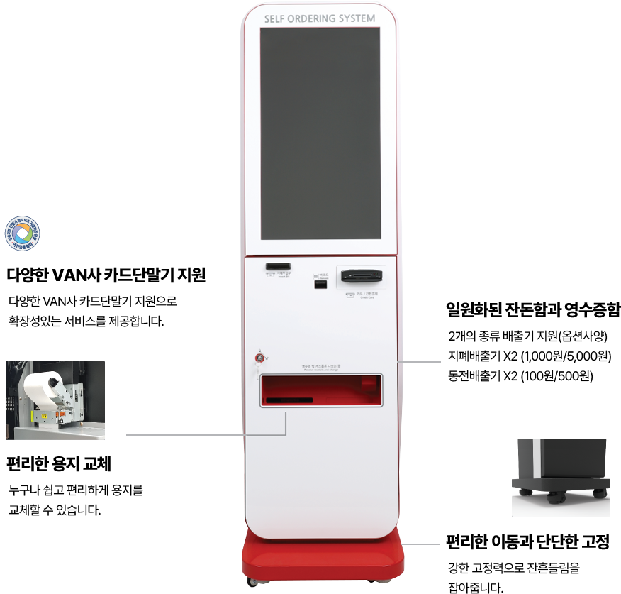 | 현금모듈 | 지폐인식기, 지폐배출기(최대2개), 동전배출기(최대2개) | |